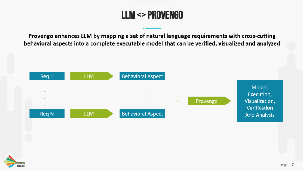What if LLM could build a complete executable test plan? Large Language Models (LLMs) have significantly advanced human language comprehension and code generation. Provengo steps in to create an LLM Spec-to-Test vertical - we map and convert system requirements, cross-cutting behavior aspects, high complexity, and large volume, all expressed in plain language - into executable test plans: optimized, prioritized, verified and visualized, for complete applications.